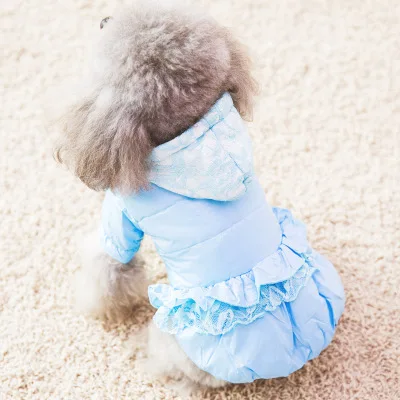 Cute Dog Pet Cat Winter Warm Lace Cotton Clothes Princess Skirt Hoodie Winter Dog Apparels