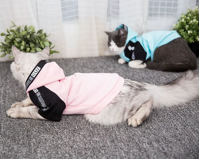 Vogue Pet Little Cat Kitten Two Feet Clothes Letter Applique Sport Hooded Overcoat
