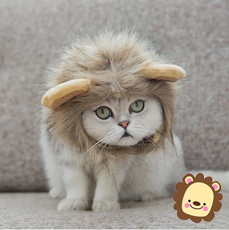 Funny Pet Dog Kitty Wigs Cat Lion Plush Cap Cosplay With Ear Sample Free