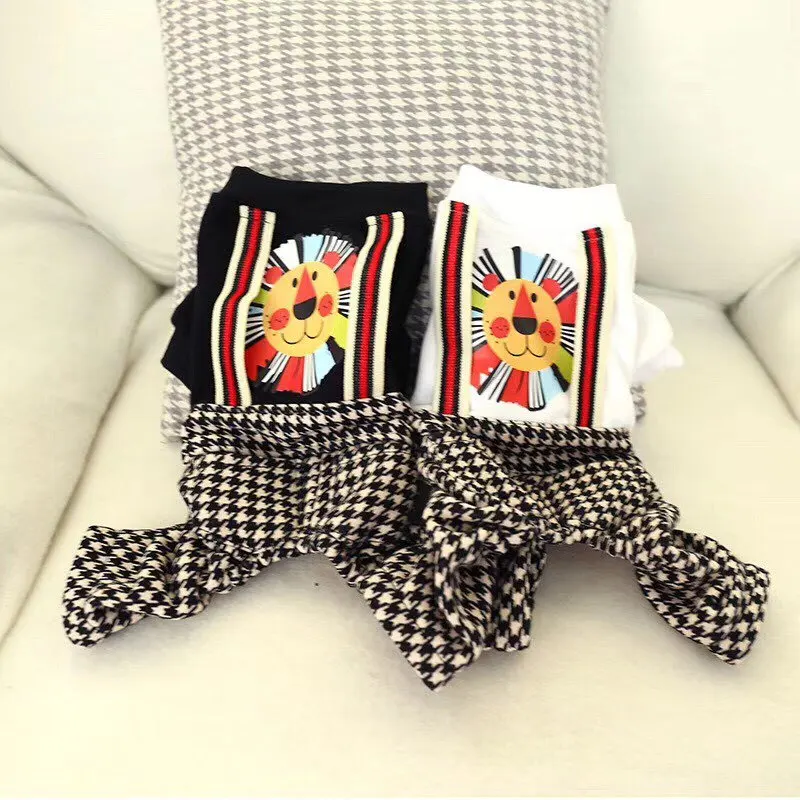 Pet Clothing Suspender Brushed Houndstooth Plaid Trousers Set Lion Printing For Pets