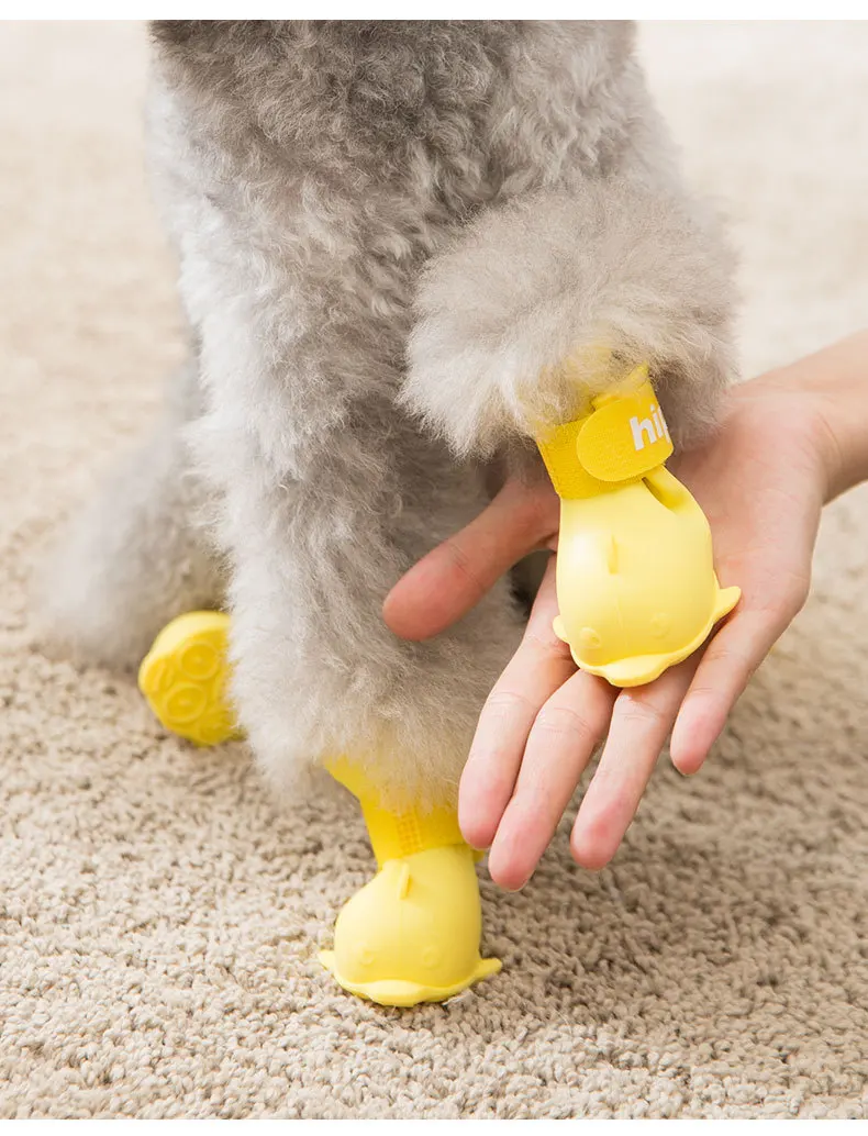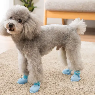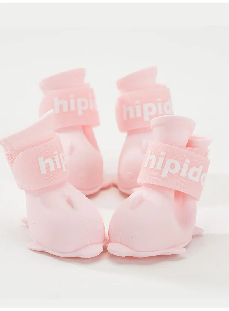 4pc/set Pet Dog Cat Jelly Color Boot Dolphin Shape Silicone Galoshes Antiskid Shoes Waterproof