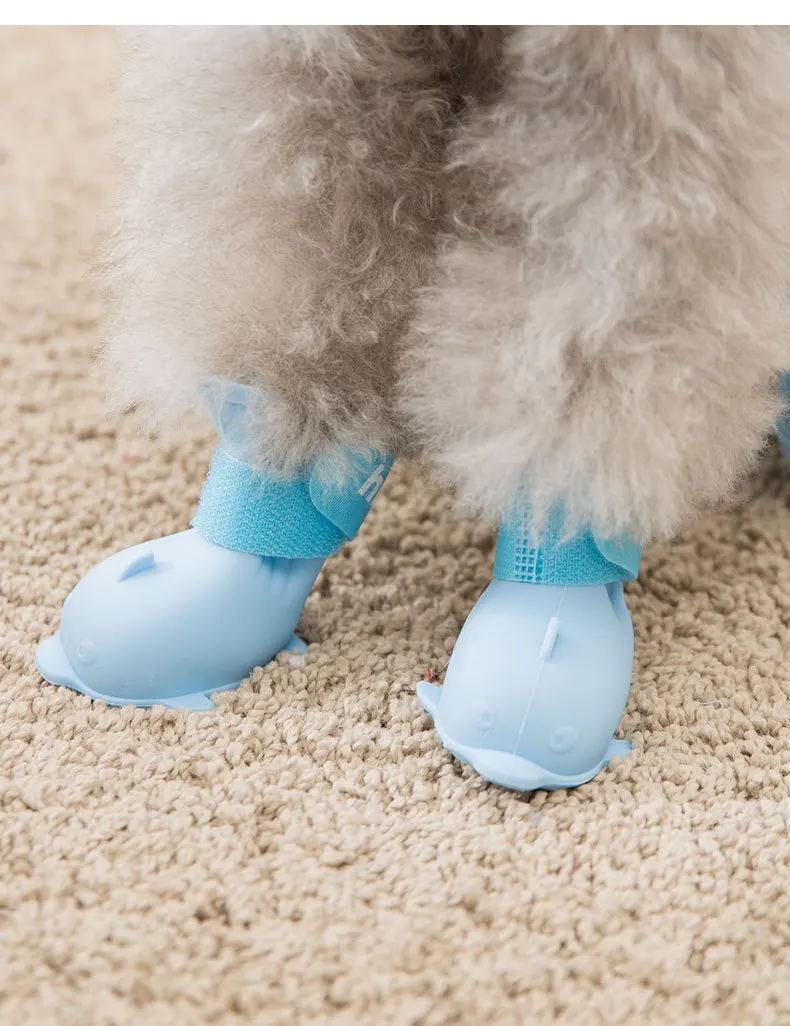 Home > Products > Pet Clothes > 4pc/set Pet Dog Cat Jelly Color Boot Dolphin Shape Silicone Galoshes Antiskid Shoes Waterproof