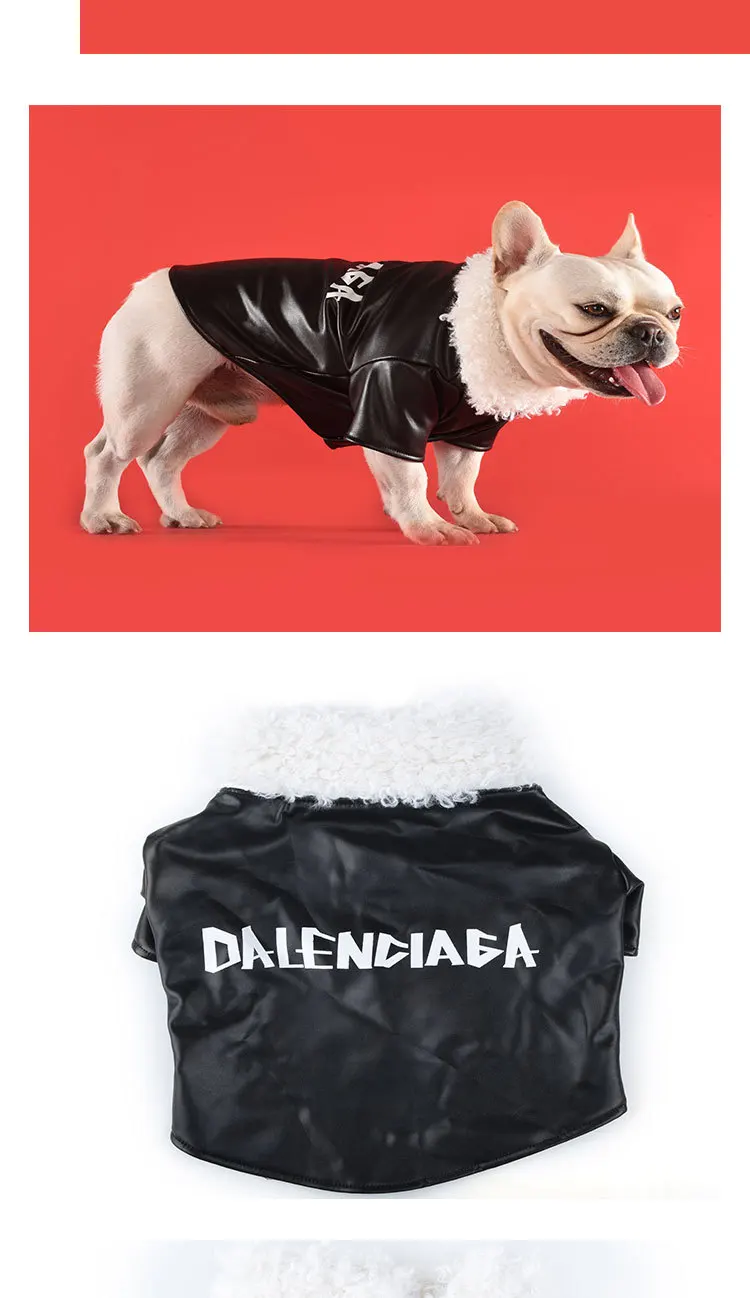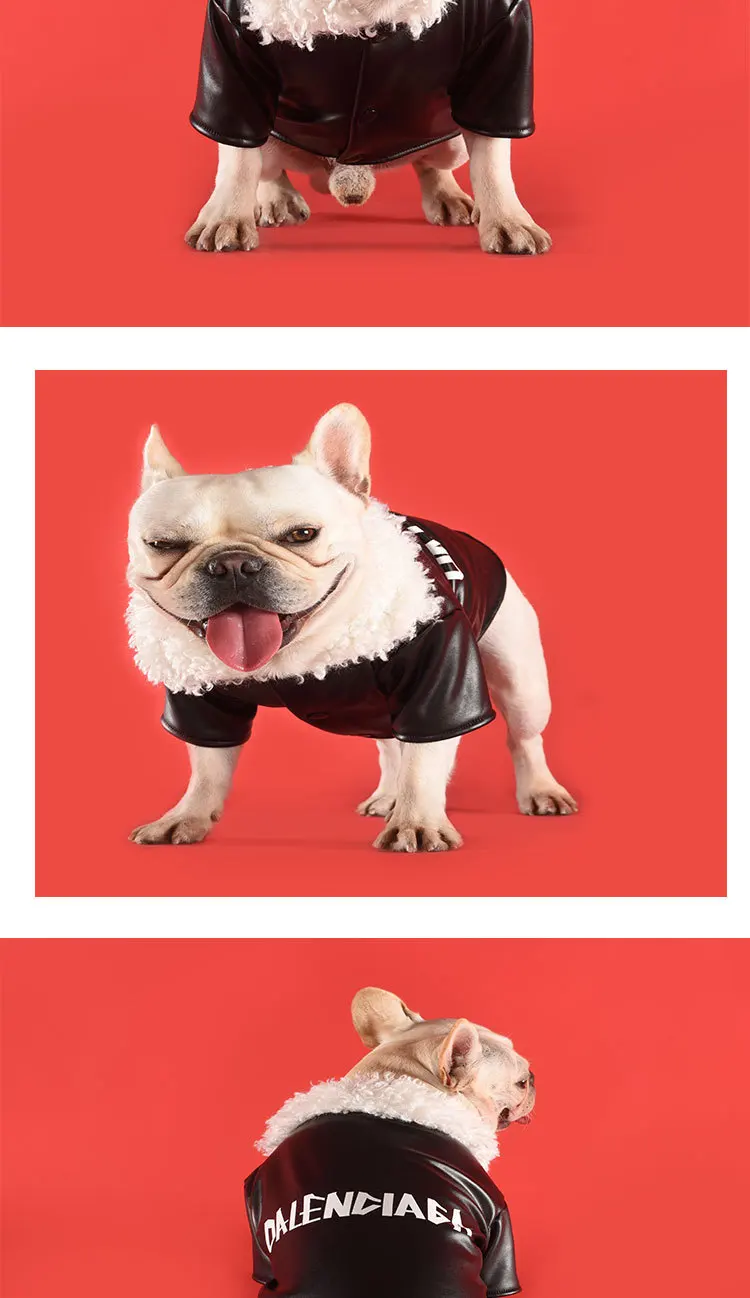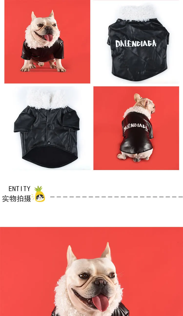 Home > Sporting Goods & Recreation > Pet Supplies > Pet Cleaning and Beauty Appliance > Punk Bulldog Leather Jacket Fat Dog Lamb Fur Collar Black Coats PU Clothes