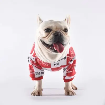 Home > Products > Pet Clothes > Spoof Pet Fat Dog Bulldog Puppy Clothes Cotton Brushed Shirt Cola Drinks Pattern