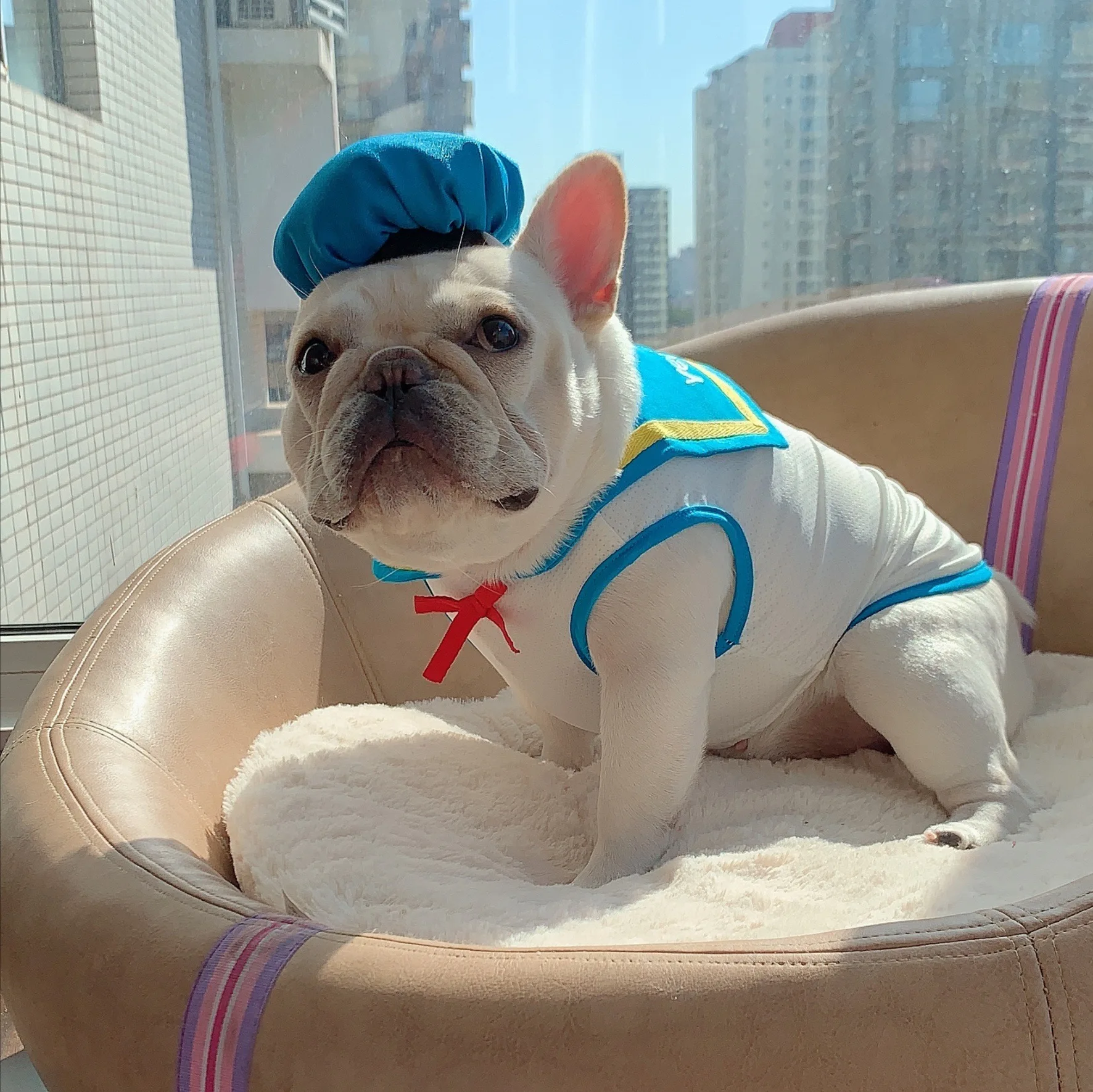 Summer Pet Dog Clothes Vest Donald Duck Embroidery Breathable T-shirt Bulldog Apparel Cap