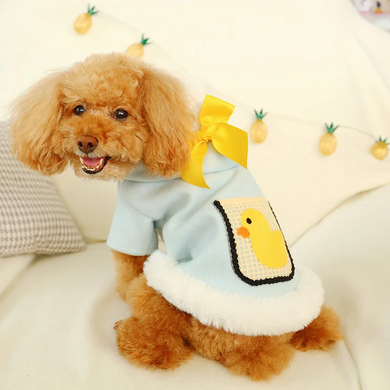 Home > Products > Pet Clothes > Personalized Pet Dogs Yellow Duck Bowknot Hoodies Fleeces Coat Clothes Cats Winter Jacket
