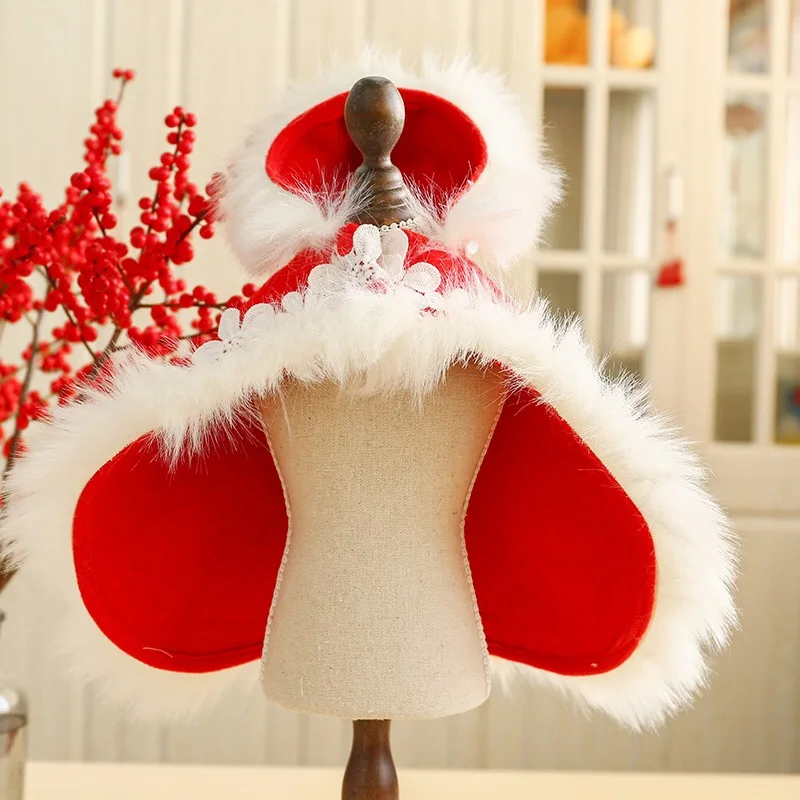 Home > Products > Pet Clothes > Pet Dogs New Year's Red Cloak Hoodies Flower Cape Cats Winter Clothes Sample Free