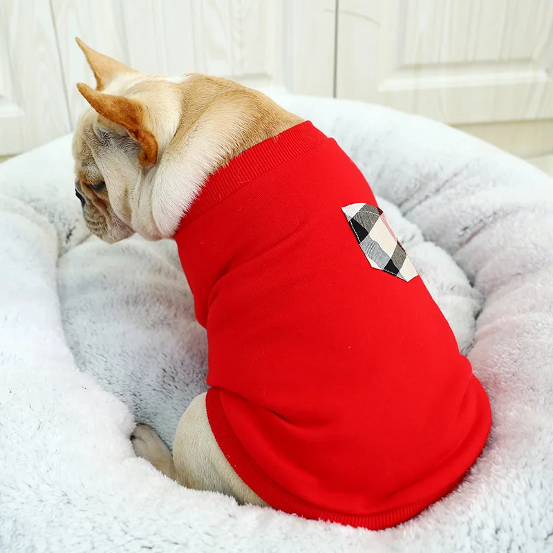 Pet Dog Cat Bulldog Bully Red Senior Brand Check T-shirt Corgi Pug Clothes Fat Dog Coat