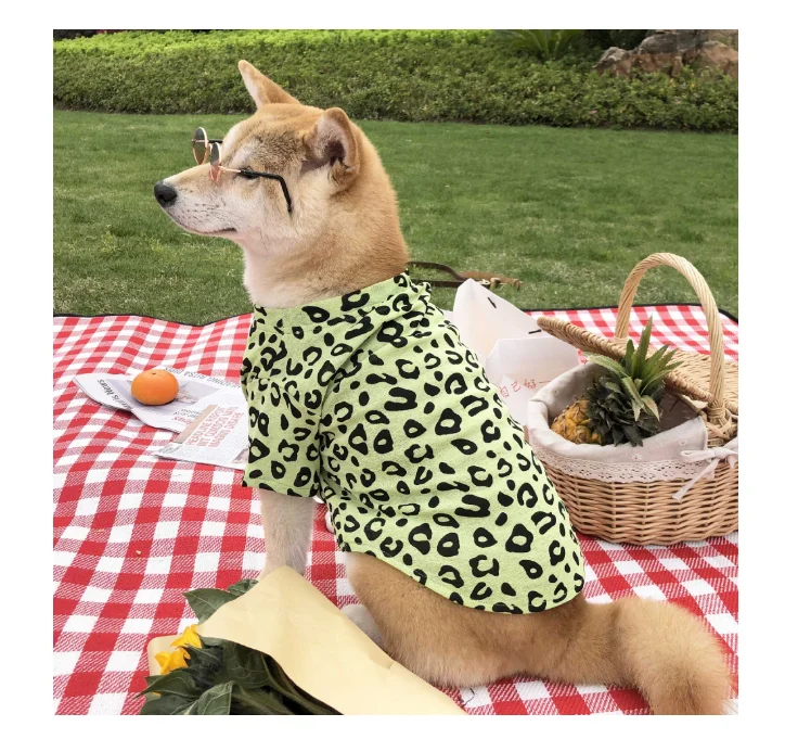 Dog Clothes Leopard Print T-shirt Summer Thin Breathable Pet Shirt Corgi Teddy Schnauzer Pomeranian Clothing