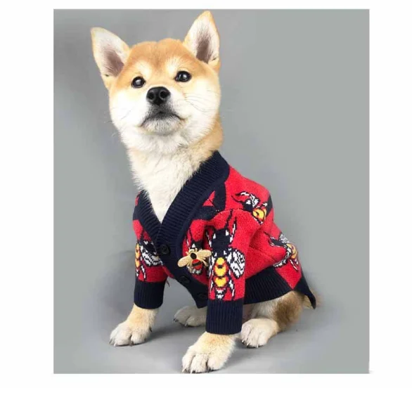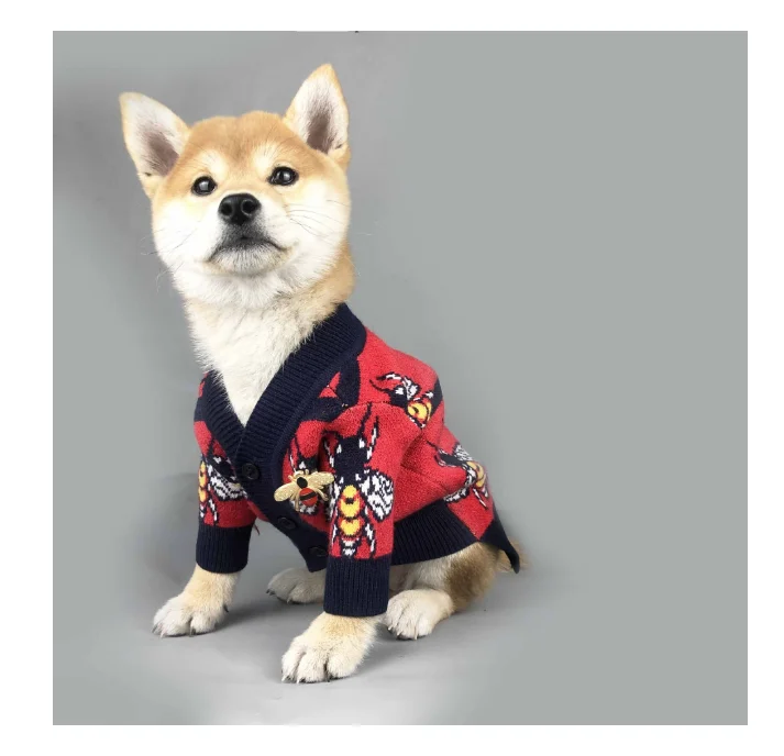 Dog Clothes Spring Red Bee Printed Sweater Coat Schnauzer Corgi Teddy Pomeranian Pet Clothing