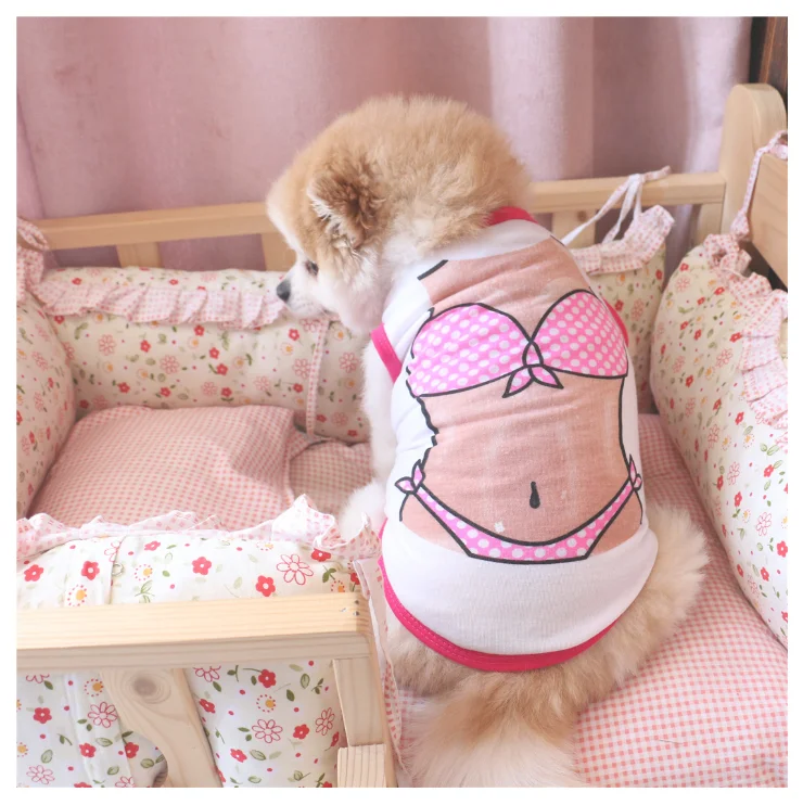 New Fashion Cotton Dog Waistcoat Thin T-shirt Teddy Pomeranian Bichon Chest Muscle Bikini Printed Pet Clothes