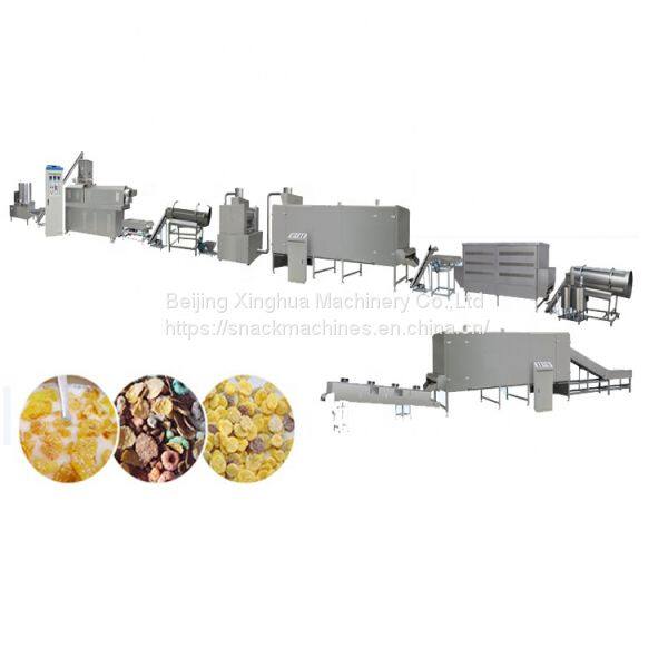 Machine to make corn flake machine can produce corn flakes which is one kind of nutritional convenient food which is produced by this process line, using corn flour as basic material, with different shapes. One outstanding characteristic of the corn flakes is that it contains abundant compound carbohydrates and dietary fibre, strengthens lots of microelements, such as vitamin and mineral, and also can be added with cocoa and sugar, like honey and maltose. It can be drunk directly after mixed into coffee, milk, yoghourt or functional drink. Children can eat it as sweet crispy snack.