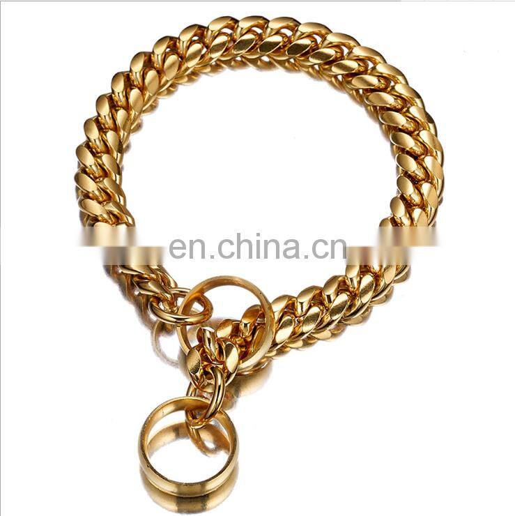 2019 New Trendy Luxurious Golden Stainless Steel Dog Collars and Leash