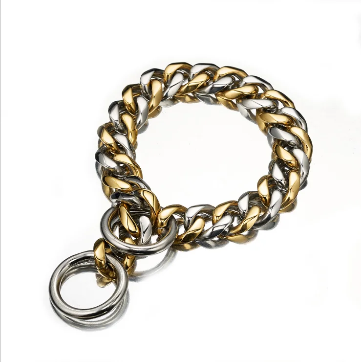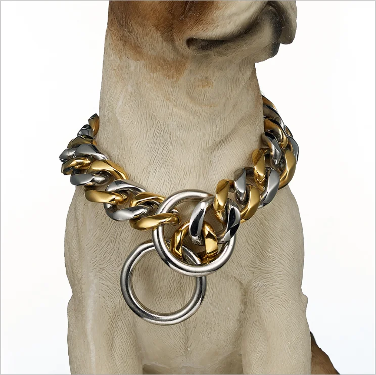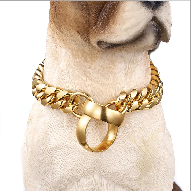 Home > Sporting Goods & Recreation > Pet Supplies > Pet Cleaning and Beauty Appliance > 2019 New Trendy Luxurious Golden Stainless Steel Dog Collars and Leash