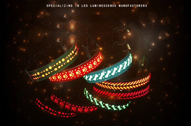 Color Pet Charging LED Flashing Leather Collar Glowing Comfortable Dog Collar