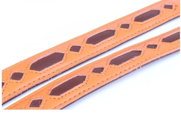 New Golden Stainless Steel Leather Rope Pet Leash Training Dog