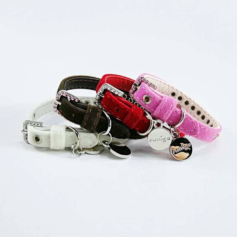 Home > Products > Pet Collar > Factory Direct pu Suede Diamond Pet Collar Dog Collar