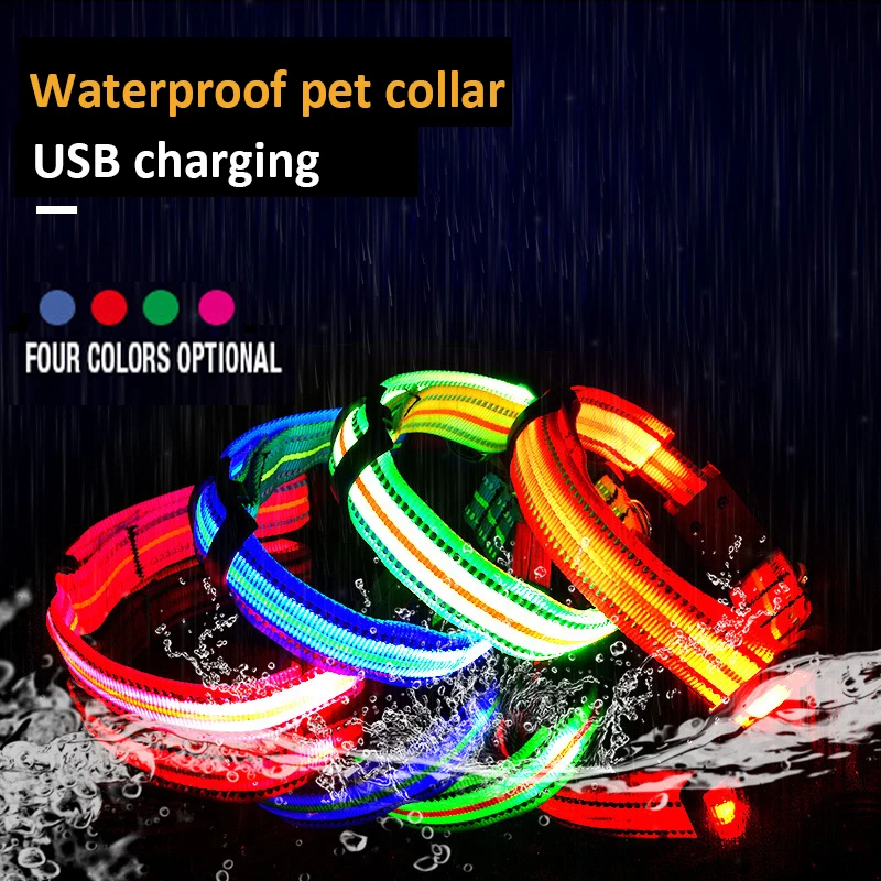 LED Dog Collar Reflective Strip Waterproof Multifunctional Charging Glowing Collar