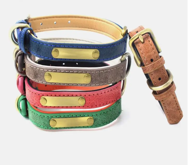 Stainless Steel Iron Sheet Word Carved Pet Collar Leather Leash Training Dog Rope Pet Neck Chain Pet Supplies