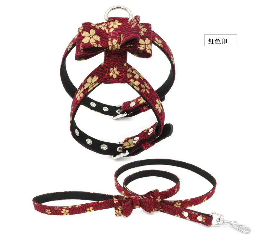 Butterfly Knot Cloth Pet Collar Leash Training Dog Leather Rope Pet Chain Pulling Rope