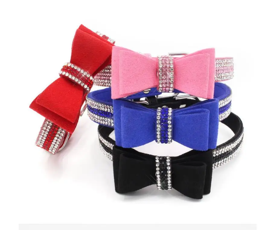 Hot Drilling Butterfly Knot Pet Collar Comffortable Leash Training Dog Rope Pet Neck Chain Pet Supplies