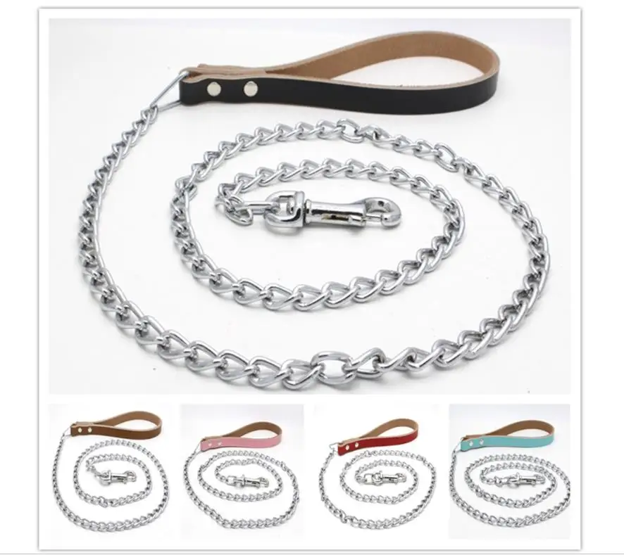 Stainless Steel Iron Leather Pet Collar Comfortable Leash Training Dog Rope Pet Neck Chain Pet Supplies