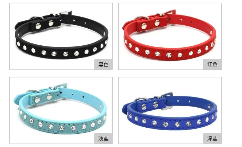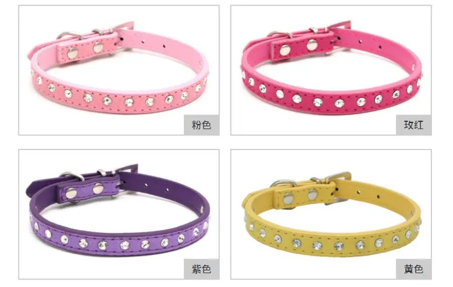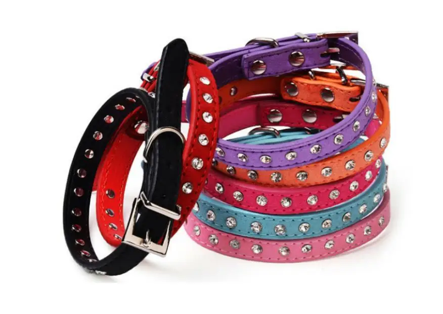 Five Rows Diamond Pet PU Collar Leather Leash Training Dog Pulling Rope Pet Neck Chain Pet Supplies