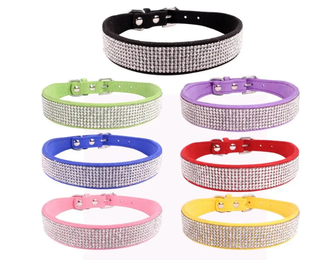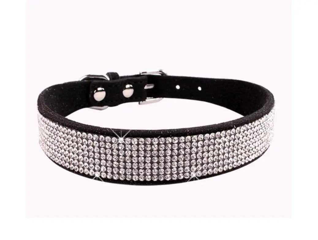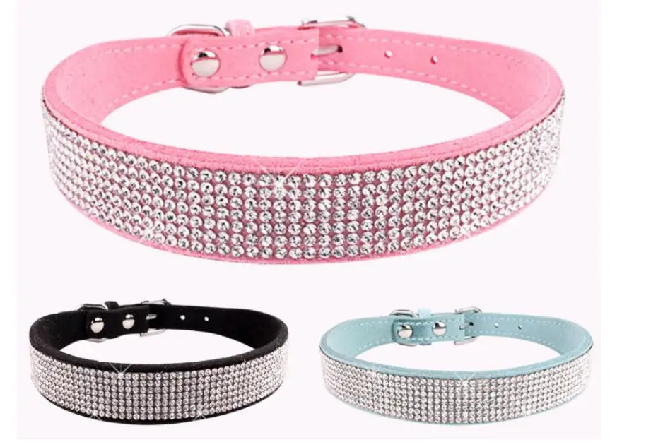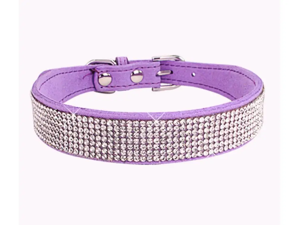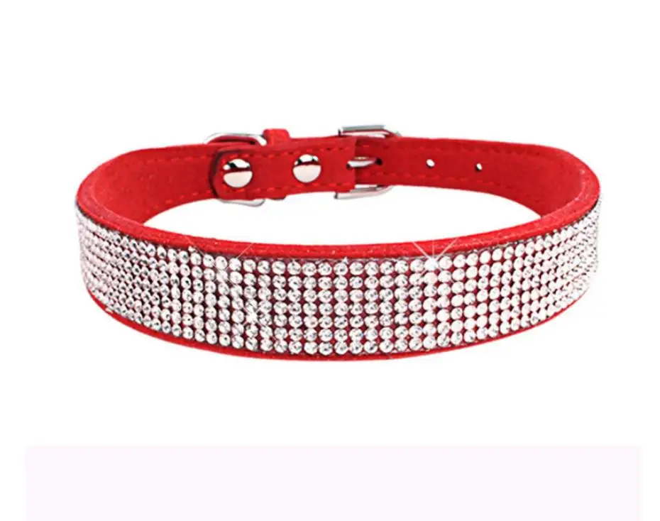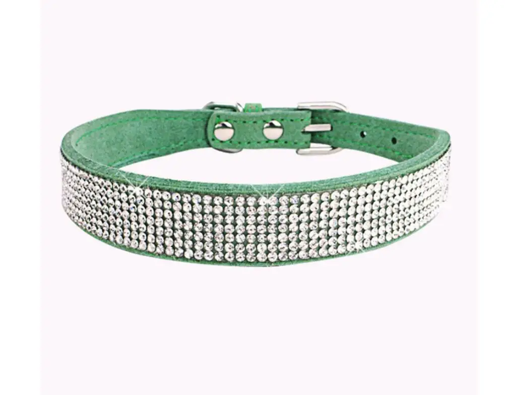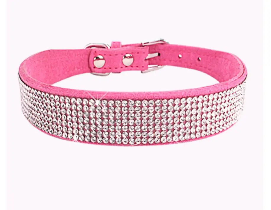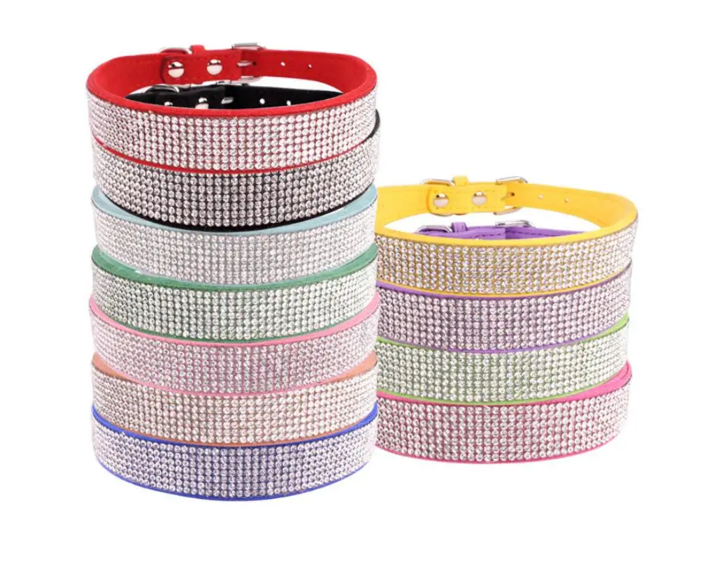 Five Rows Diamond Pet PU Collar Leather Leash Training Dog Pulling Rope Pet Neck Chain Pet Supplies