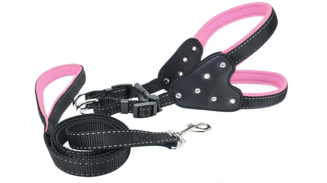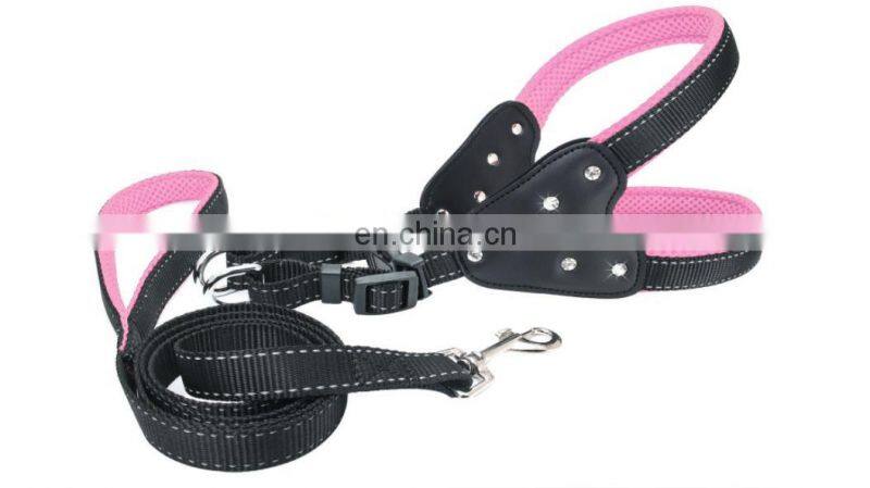 Bright Diamond Butterfly Knot Breathable Reflective Pet Collar Leash Training Dog Pulling Rope Pet Neck Chain Pet Supplies