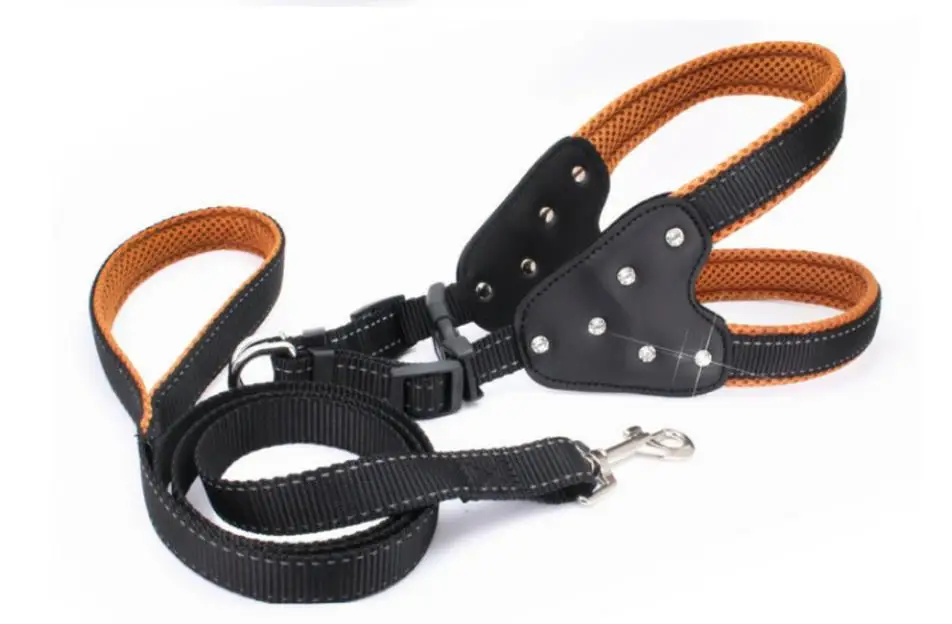 Bright Diamond Comfortable Pet PU Collar Leash Training Dog Pulling Rope Pet Neck Chain Pet Supplies