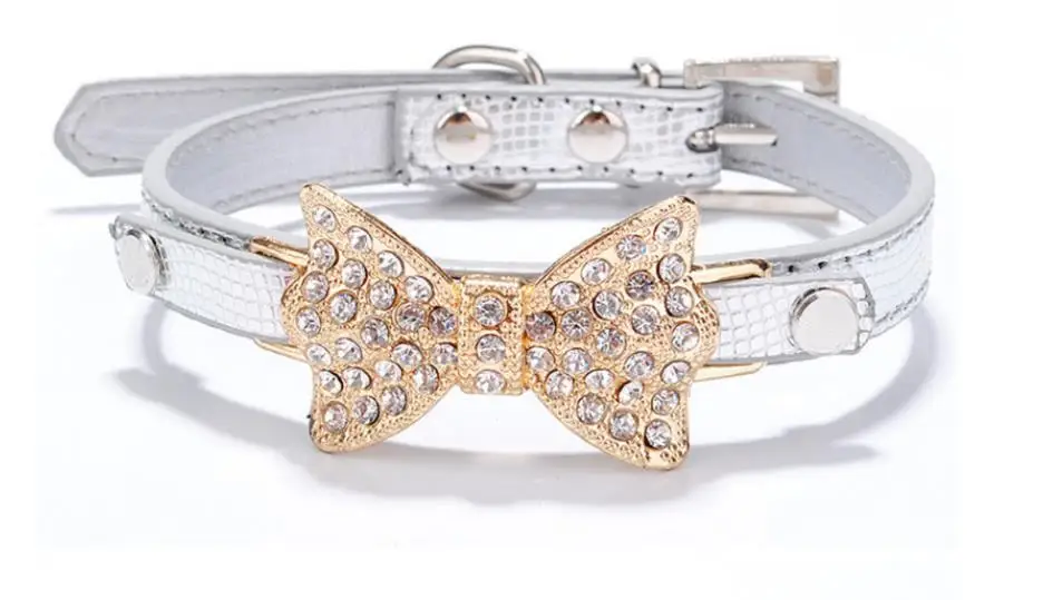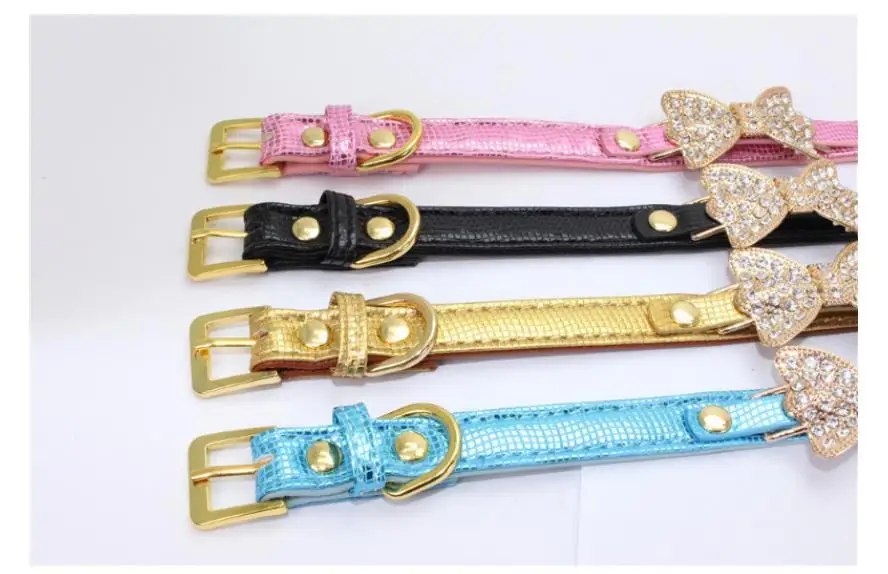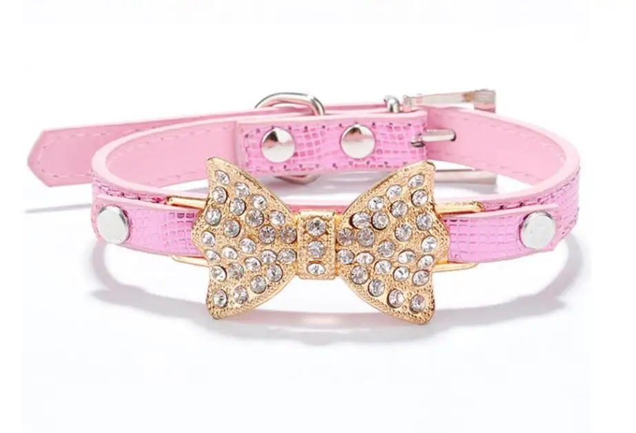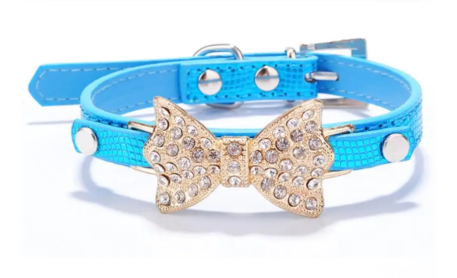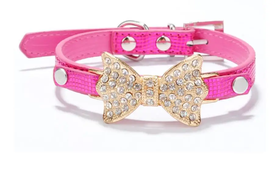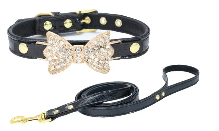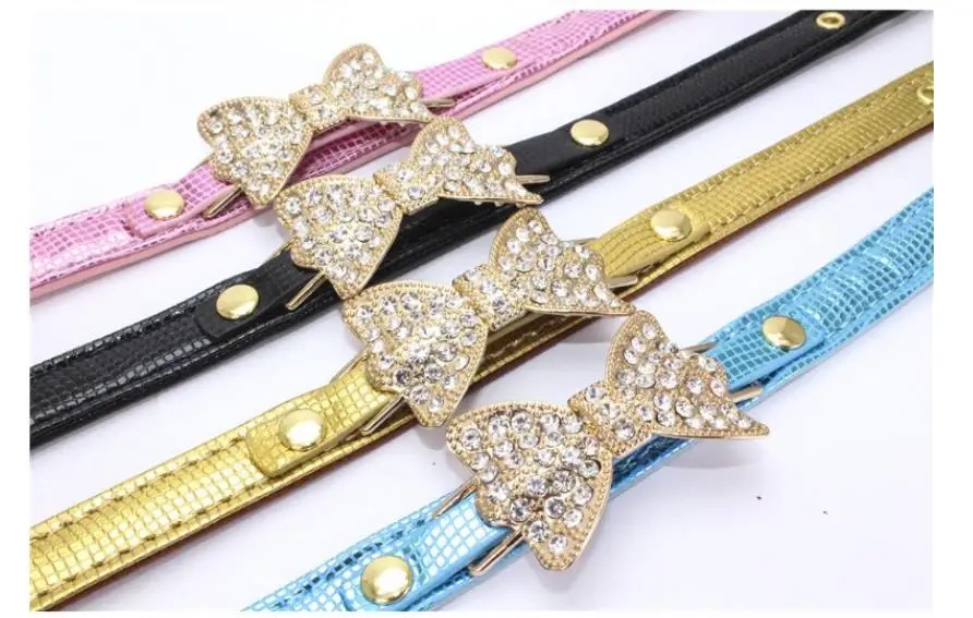 Colorful Bright Diamond Butterfly Knot Pet PU Collar Leash Training Dog Pulling Rope Pet Neck Chain Pet Supplies