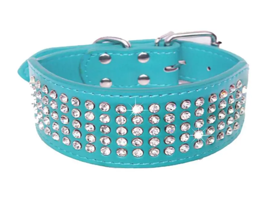 Five Rows Diamond Pet PU Collar Leather Leash Training Dog Pulling Rope Pet Neck Chain Pet Supplies