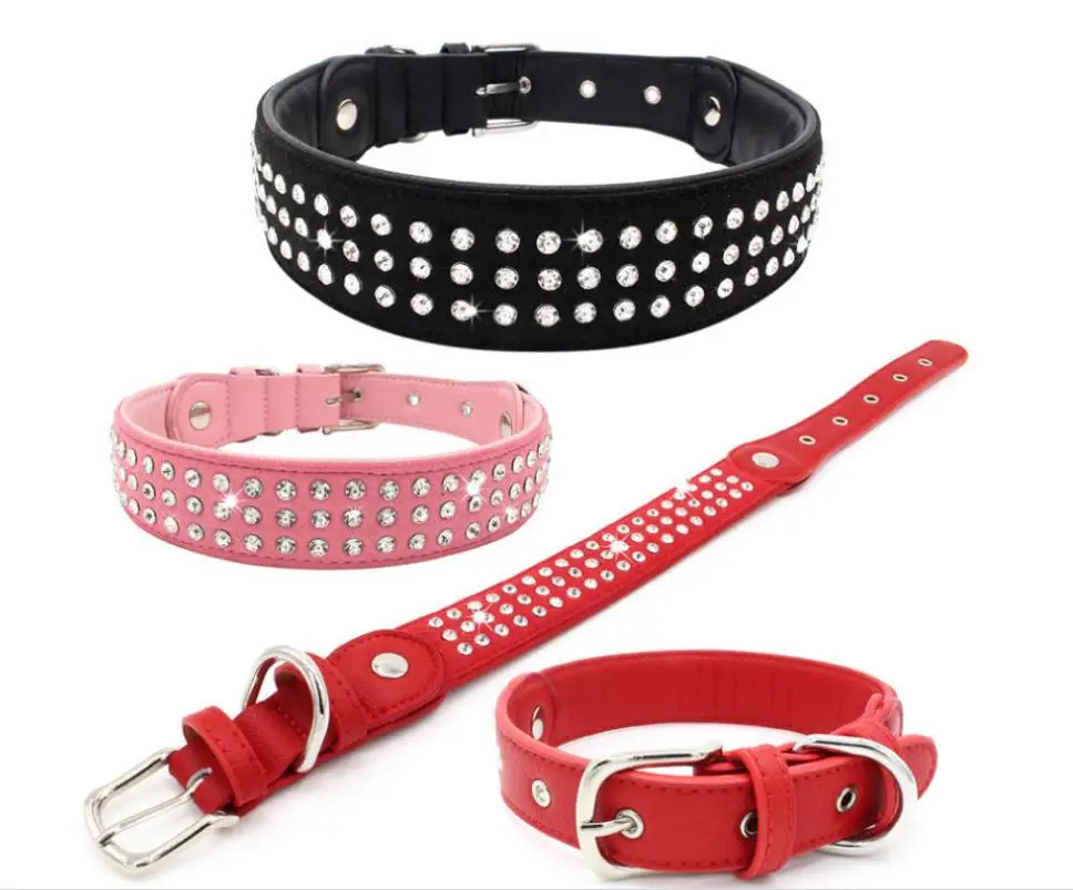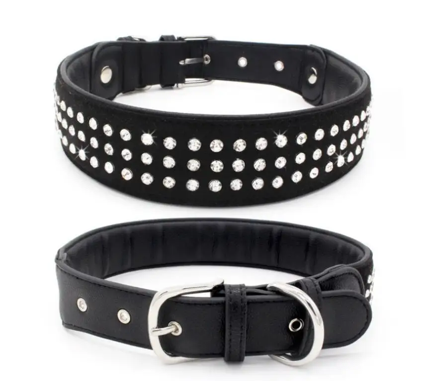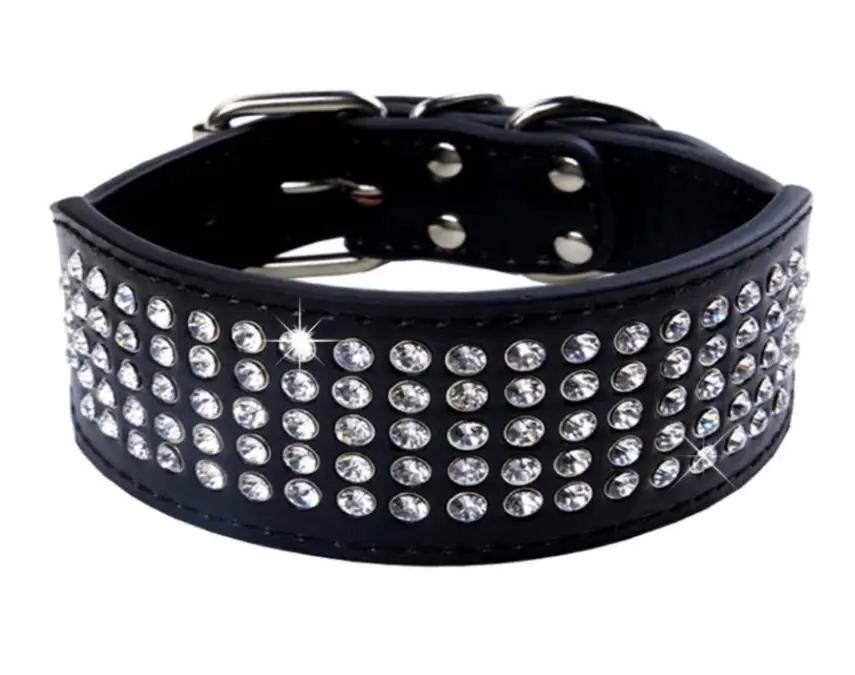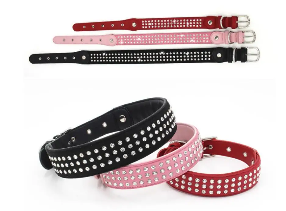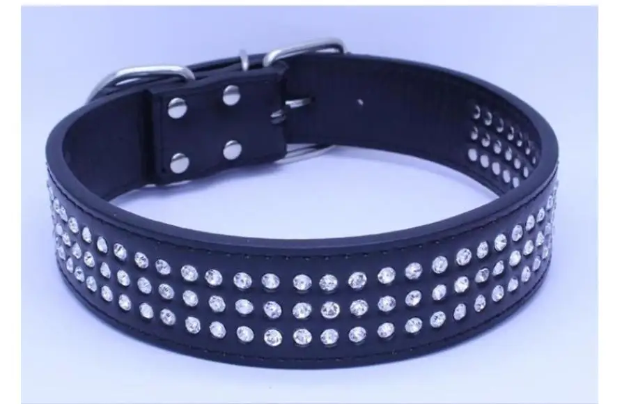 Three Rows Diamonds Pet Collar Leash Training Dog Pulling Rope Pet Neck Chain Pet Supplies