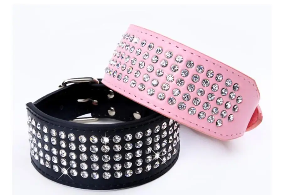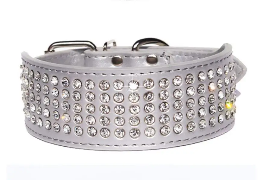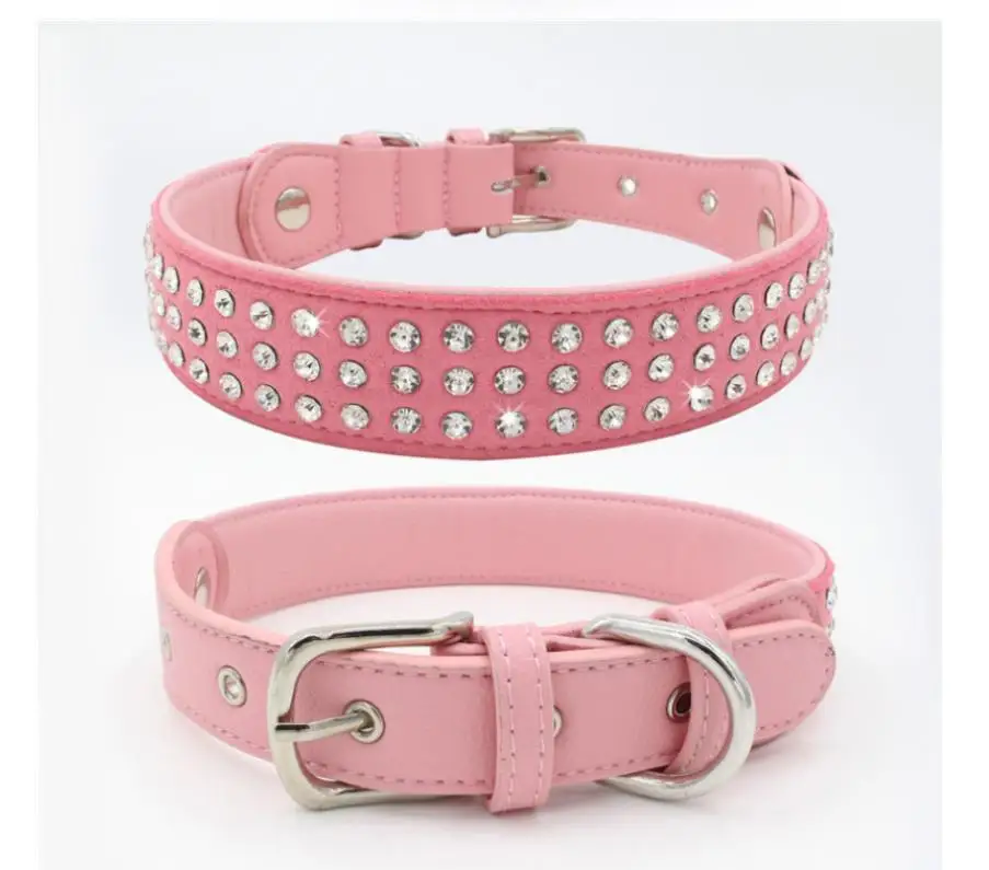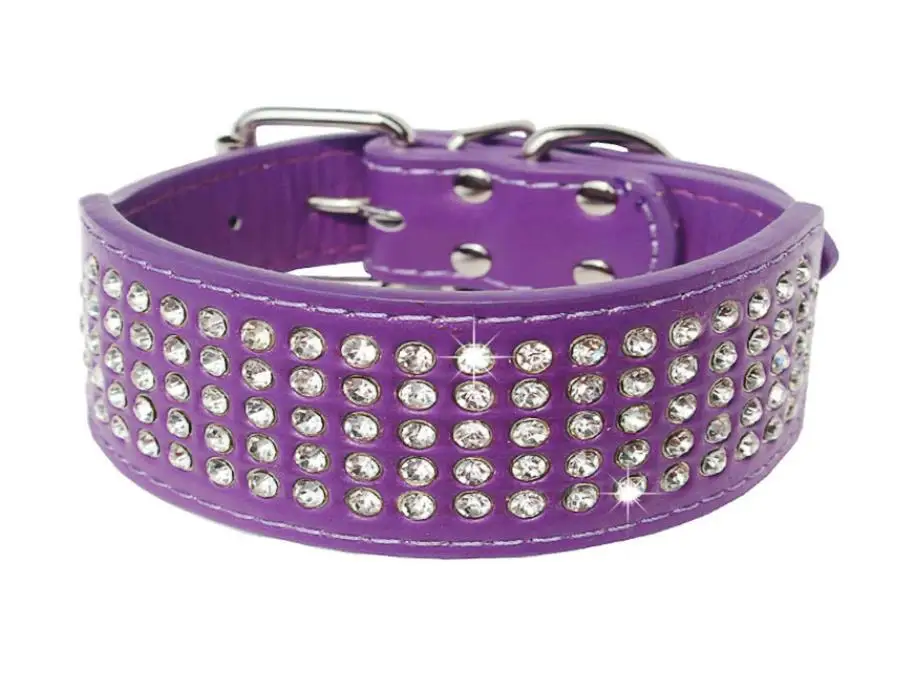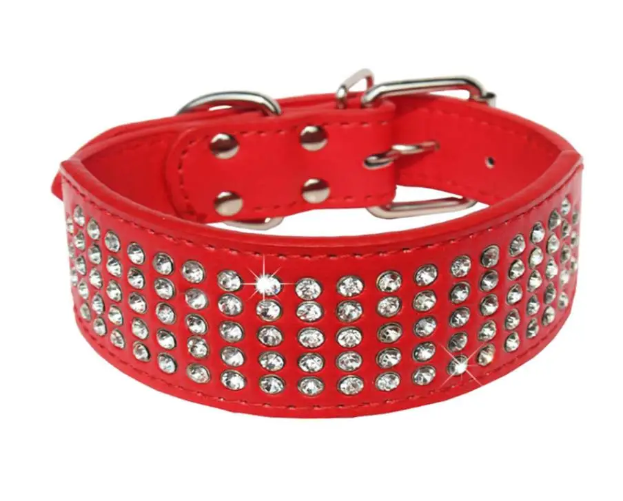 Three Rows Diamonds Pet Collar Leash Training Dog Pulling Rope Pet Neck Chain Pet Supplies