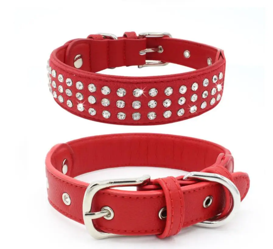 Bright Diamond Comfortable Pet PU Collar Leash Training Dog Pulling Rope Pet Neck Chain Pet Supplies