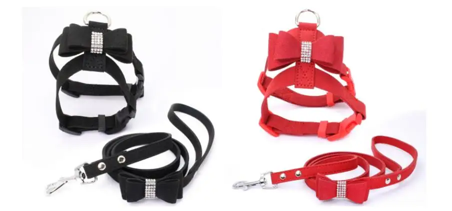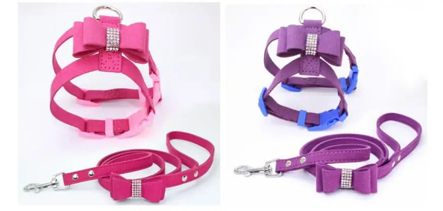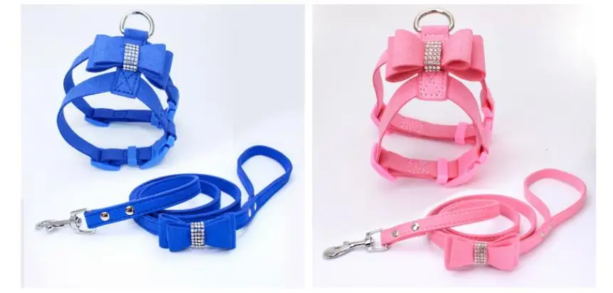Colorful Bright Diamond Butterfly Knot Pet PU Collar Leash Training Dog Pulling Rope Pet Neck Chain Pet Supplies