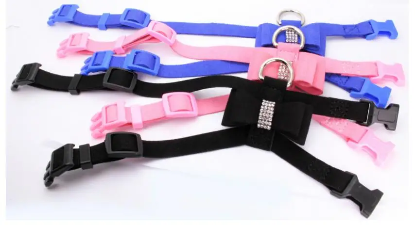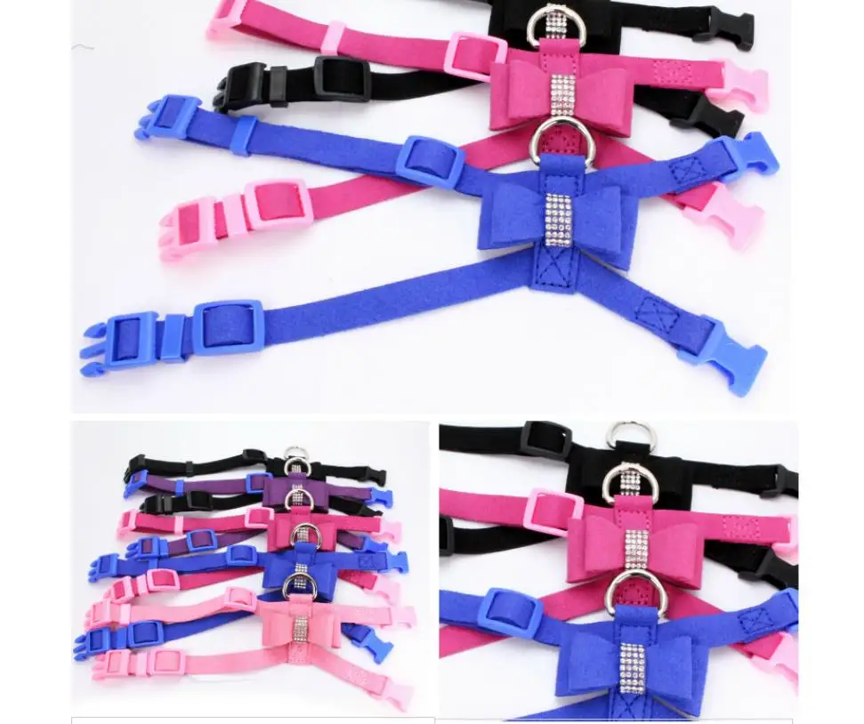 Bright Diamond Butterfly Knot Breathable Reflective Pet Collar Leash Training Dog Pulling Rope Pet Neck Chain Pet Supplies