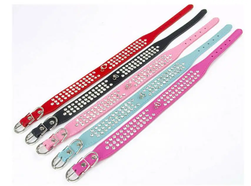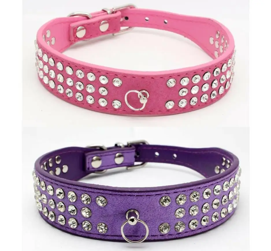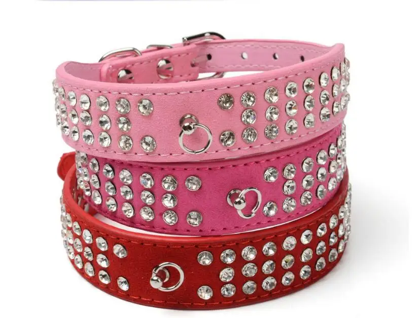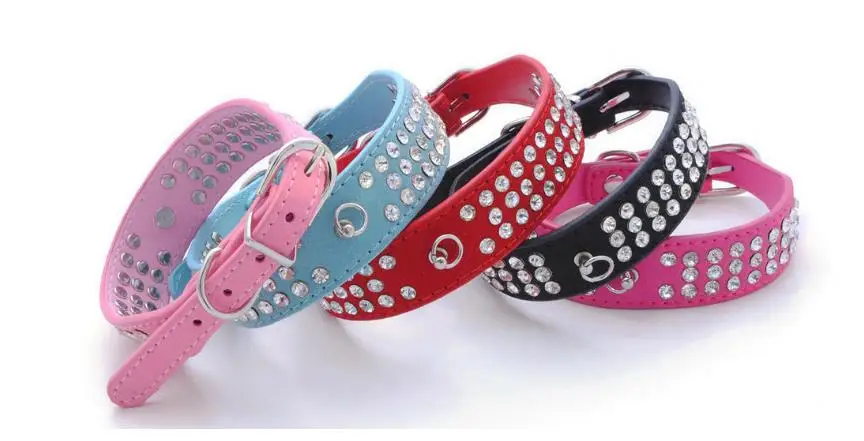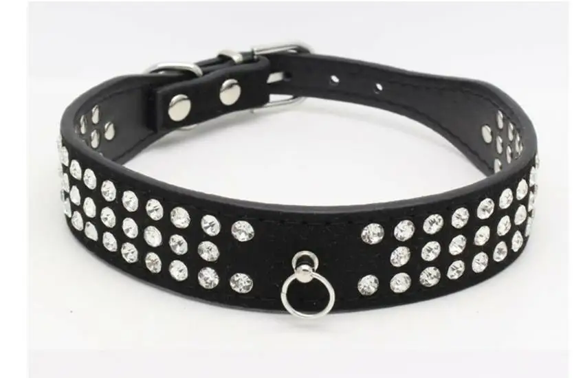 Three Rows Diamonds Pet Collar Leash Training Dog Pulling Rope Pet Neck Chain Pet Supplies
