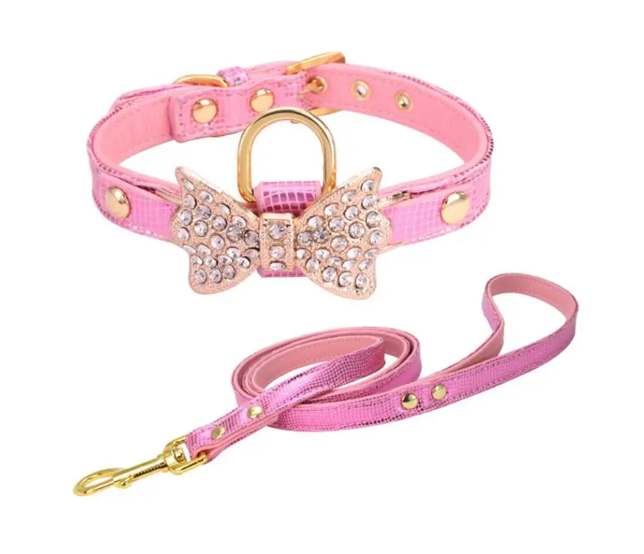 Snake-pattern Diamond Gold Butterfly Pet Collar Leash Training Dog Pulling Rope Pet Neck Chain Pet Supplies