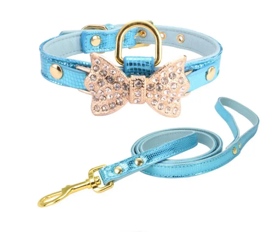 Blue Diamond Embedded Pet Collar Leash Training Dog Pulling Rope Pet Neck Chain Pet Supplies