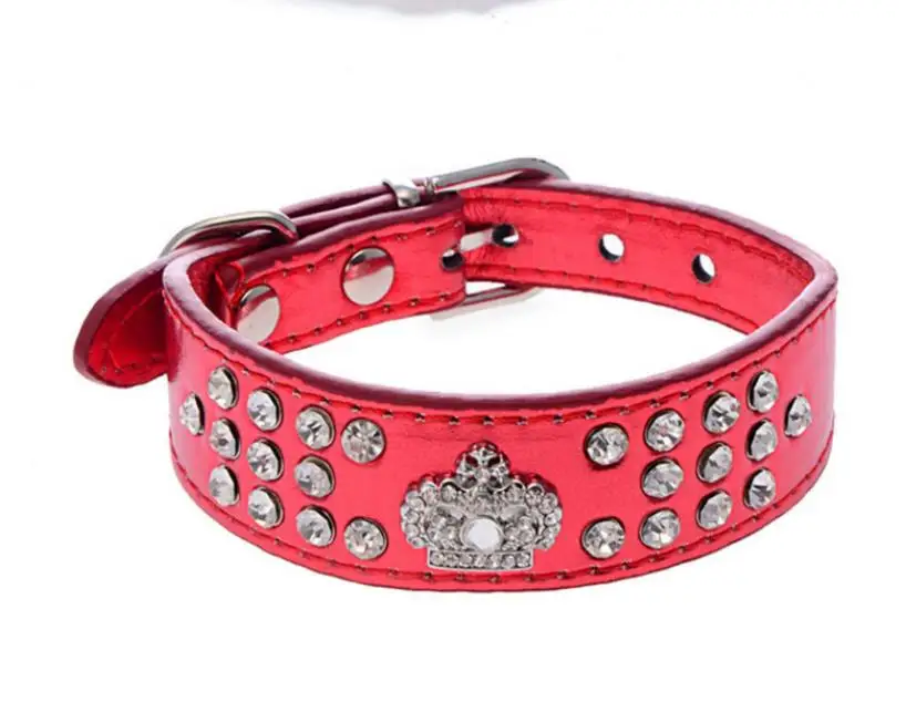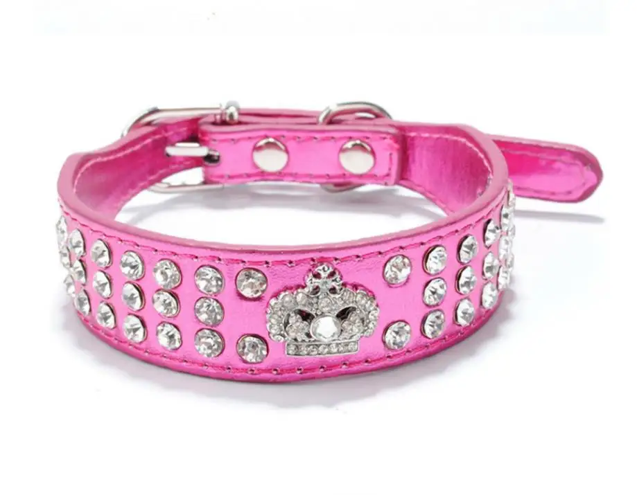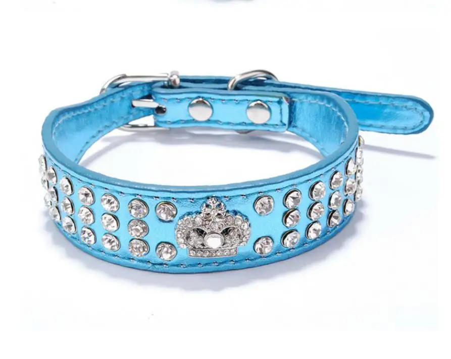 Home > Sporting Goods & Recreation > Pet Supplies > Pet Cleaning and Beauty Appliance > Three Rows Crystal Diamond Crown Pet Collar Leash Training Dog Pulling Rope Pet Neck Chain Pet Supplies