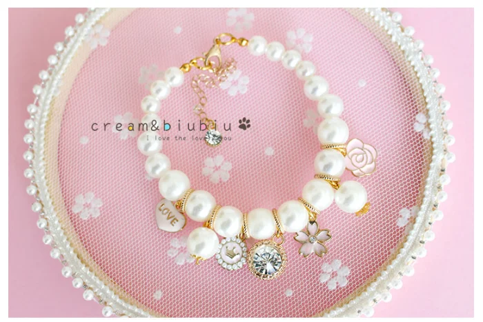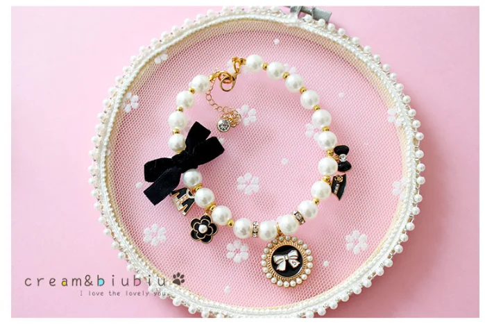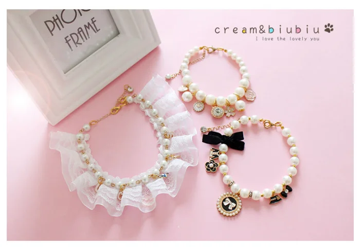 Home > Products > Pet Collar > Pet Pearl Necklace Dog Cat Lace Butterfly Bowknot Bell Necklace Teddy Bichon Pet Supplies