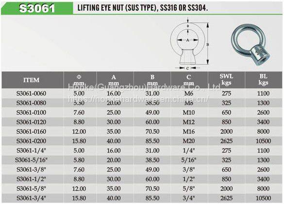 M12/ M16 Stainless Steel 304 Lifting Eye Nut For Sail Boats And Yachts