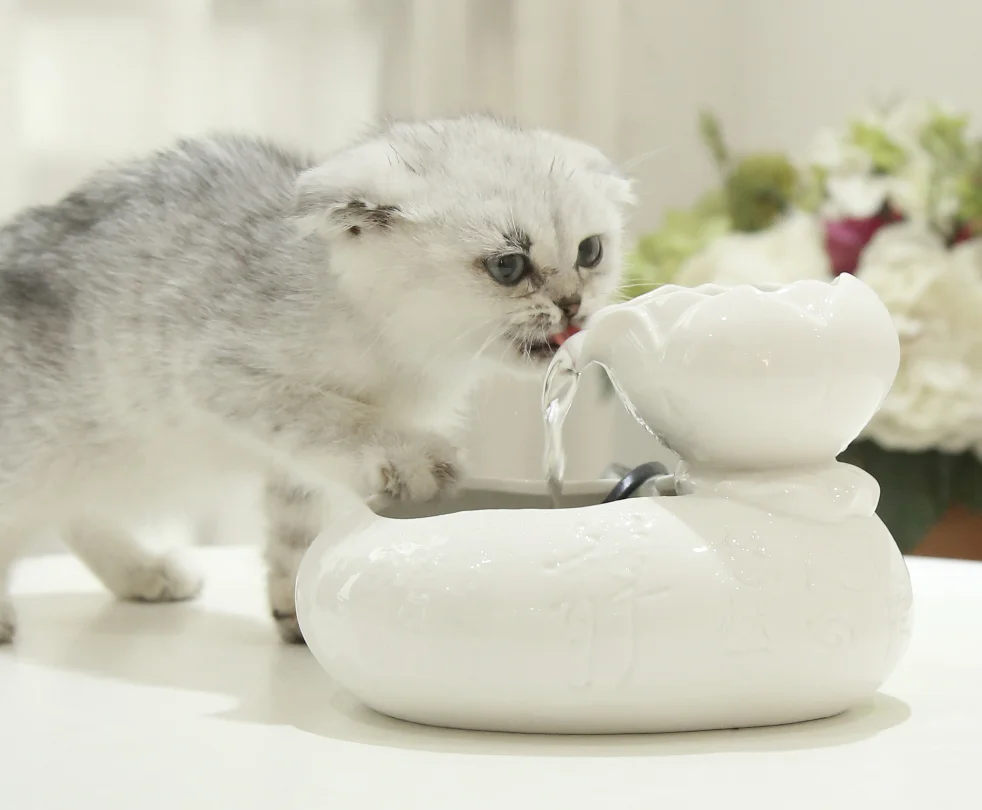 Hot Selling Fortune Cat Automatic Pet Bowl Cyclic Water Live Fountain Ceramic Cats Dogs Bowl
