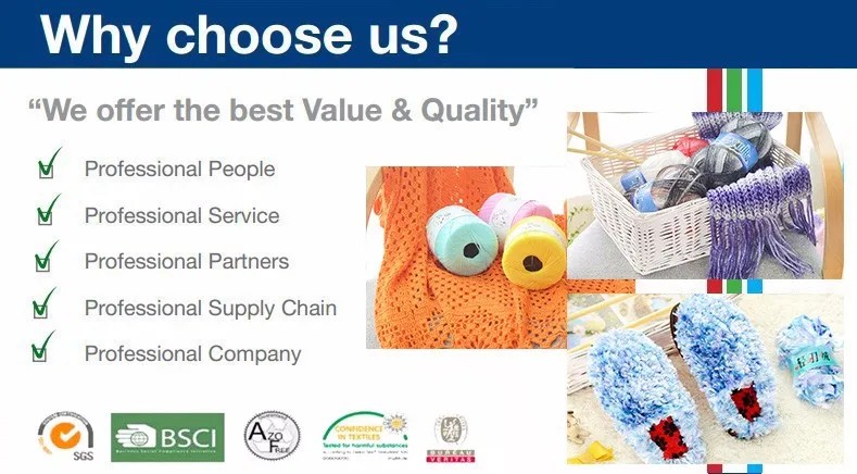 We work as the leading dealers of various leading China fancy knitting yarn manufacturers / factory , and are treatde with best dealership prices . Numberous comparison and feedbacks from clients , our price is more competitive than some othermanufacturers / factories .