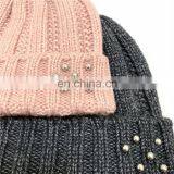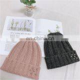 Pompom Winter Hat Custom Stock Sale Knit Girls Knitted Metal-decorated