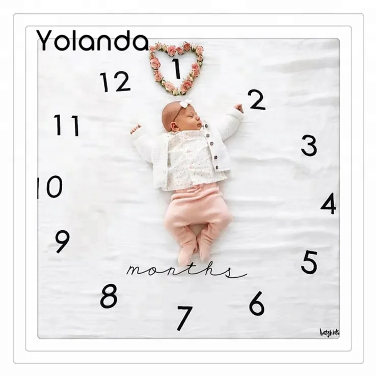 Wholesale super soft felt custom print design fleece baby monthly milestone blanket