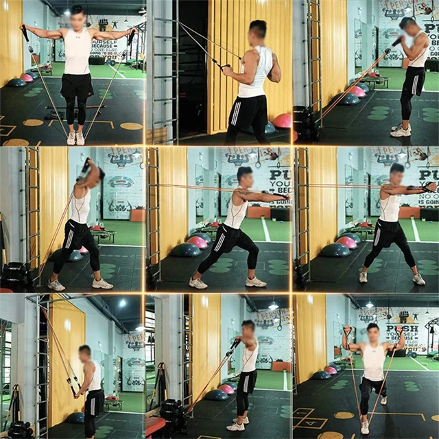 Choose the appropriate training action for the part we want to train, and then use the elasticity of the tension rope for weight training to make the exercise effect more obvious.