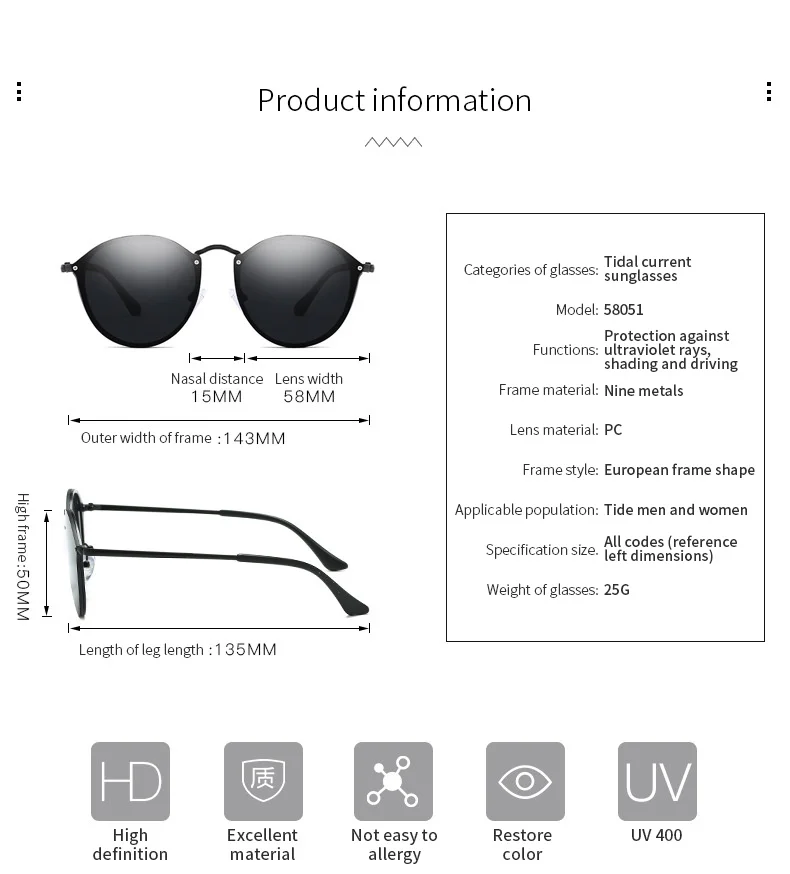 Home > Products > Outdoors & Sports > Wholesale Custom Versage Sunglasses With Colorful Mirror Lenses Classical Eyewear for Men and Women