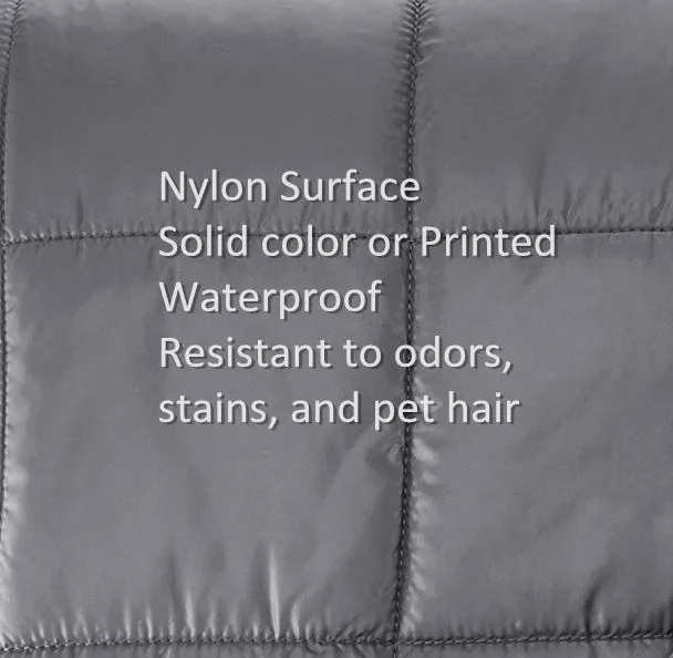 Ripstop nylon has a durable water repellent (DWR) finish that sheds water, stains, pet hair, dirt and other debris